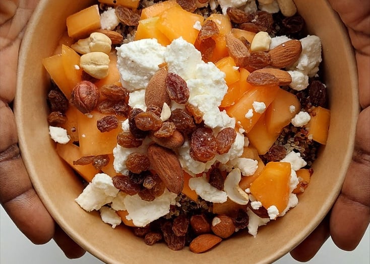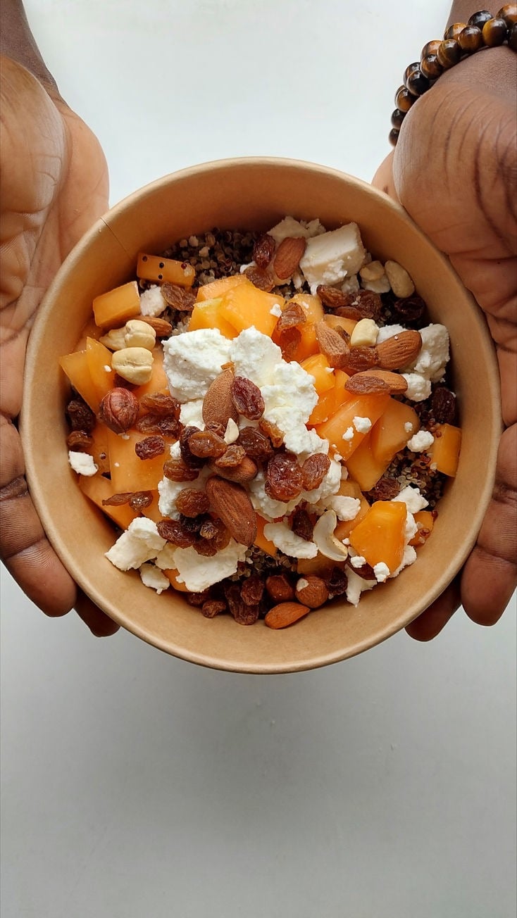 Bowl composé de falafels croustillants, houmous onctueux, taboulé au trio de quinoa.